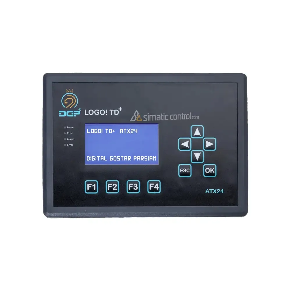 لوگو تی دی ATX24 ایرانی DGP یک پی ال سی پنل ترکیبی ساخت ایران است با تغذیه 24VDC که روی درب تابلو نصب می شود. این مدل مشابه لوگو زیمنس دارای پورت اترنت جهت برنامه نویسی هست که توسط برنامه LSC V8 پروگرام می شود.